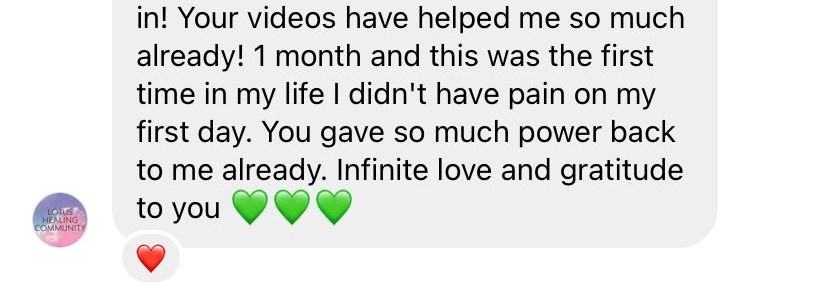 I get to live life with more ease, and my health NEVER stops suppporting my ability to create my dream life. I am not in pain anymore, and I don't dread my cycle ever! In fact I love my period.