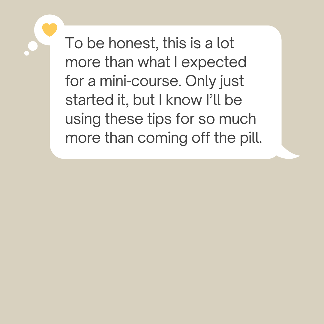The point of this mini-course is to help support the body transition off hormonal birth control. It is not intended whatsoever to guide you through healing hormonal problems and period problems.
