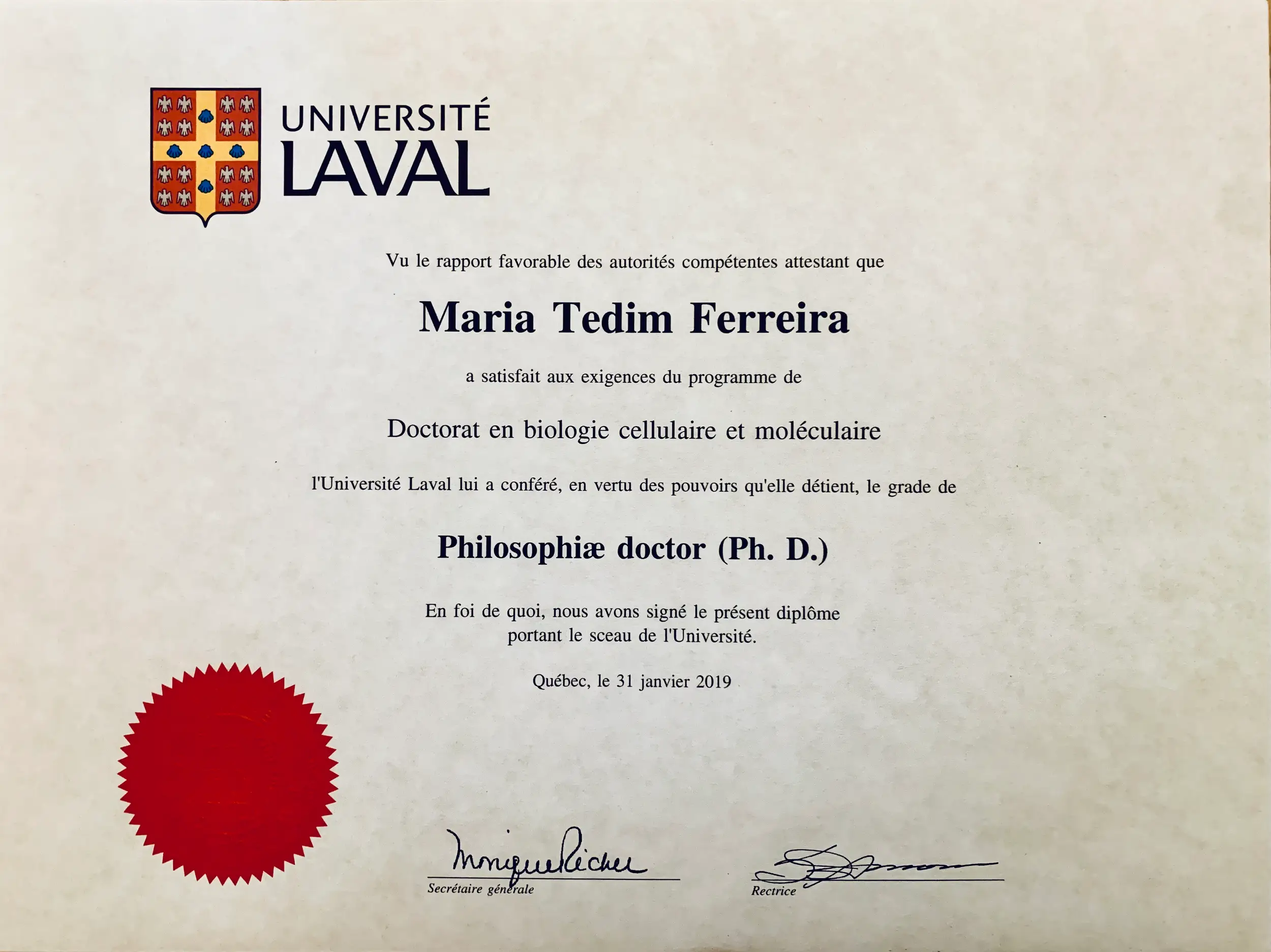 ● Doutoramento em Biologia Celular e Molecular, com foco em Tratamento Oncológico, Université Laval, 2015-2018