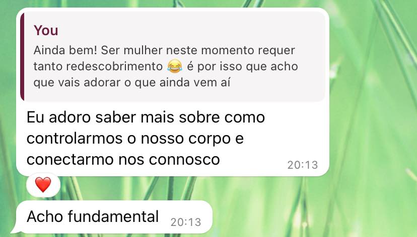 "Estou a gostar muito das sessões! Quero fazer mais".